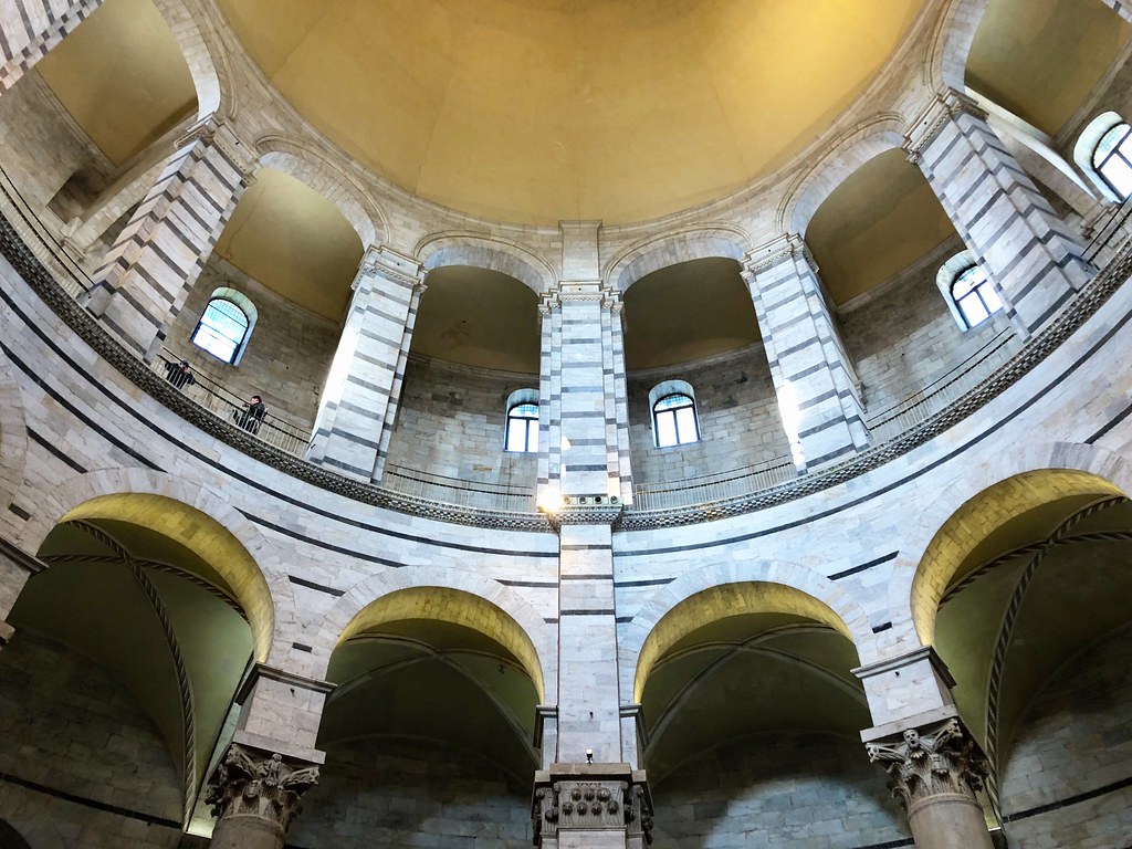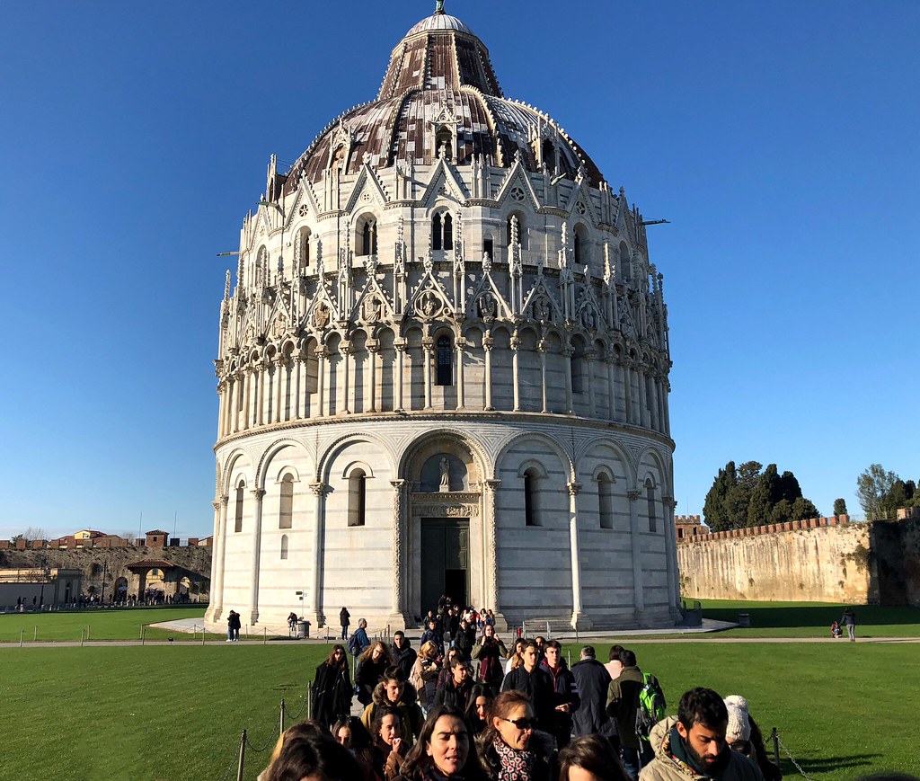 The Piazza dei Miracoli or Square of Miracles is so called because the three main buildings have long been considered architectural marvels or miracles. Just think about it for a second, the cathedral, baptistery and tower or campanile were built between the 11th and 14th centuries. That wasn’t a great time to be alive in Western Europe and these gleaming wonders must have seemed positively otherworldly. And they still are really. Sure people visit to see the Leaning Tower of Pisa and create terrible photos of themselves pretending to hold it up, but I find it hard to believe visitors don’t walk away entranced. From the perfectly manicured lawns to the style and symmetry of the buildings themselves, the eye is constantly attracted to new and wondrous sights.